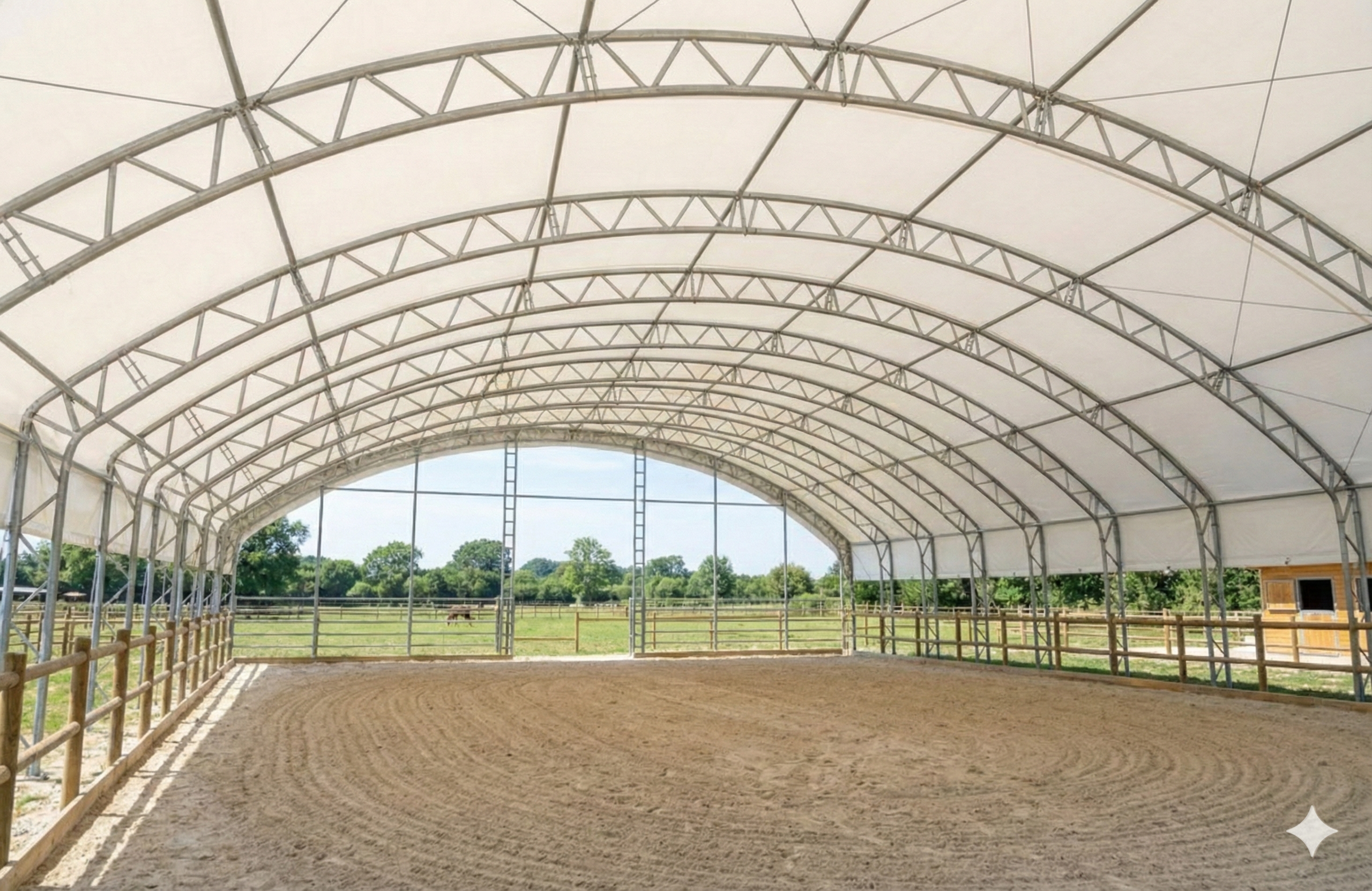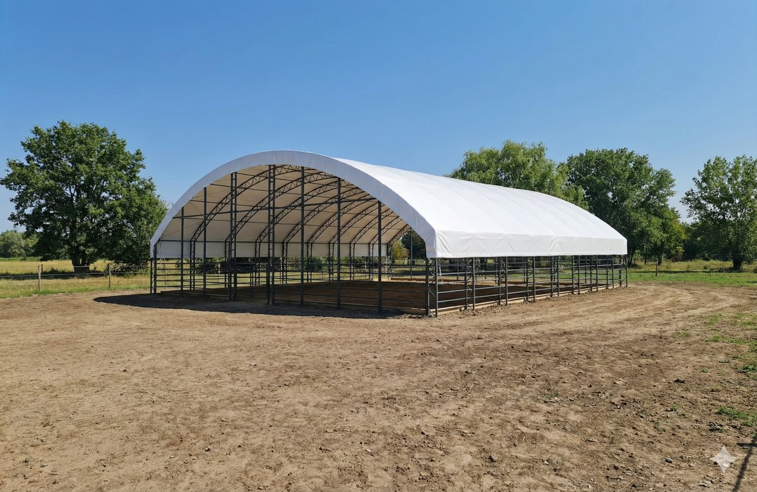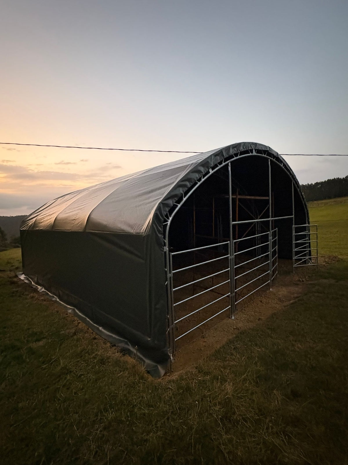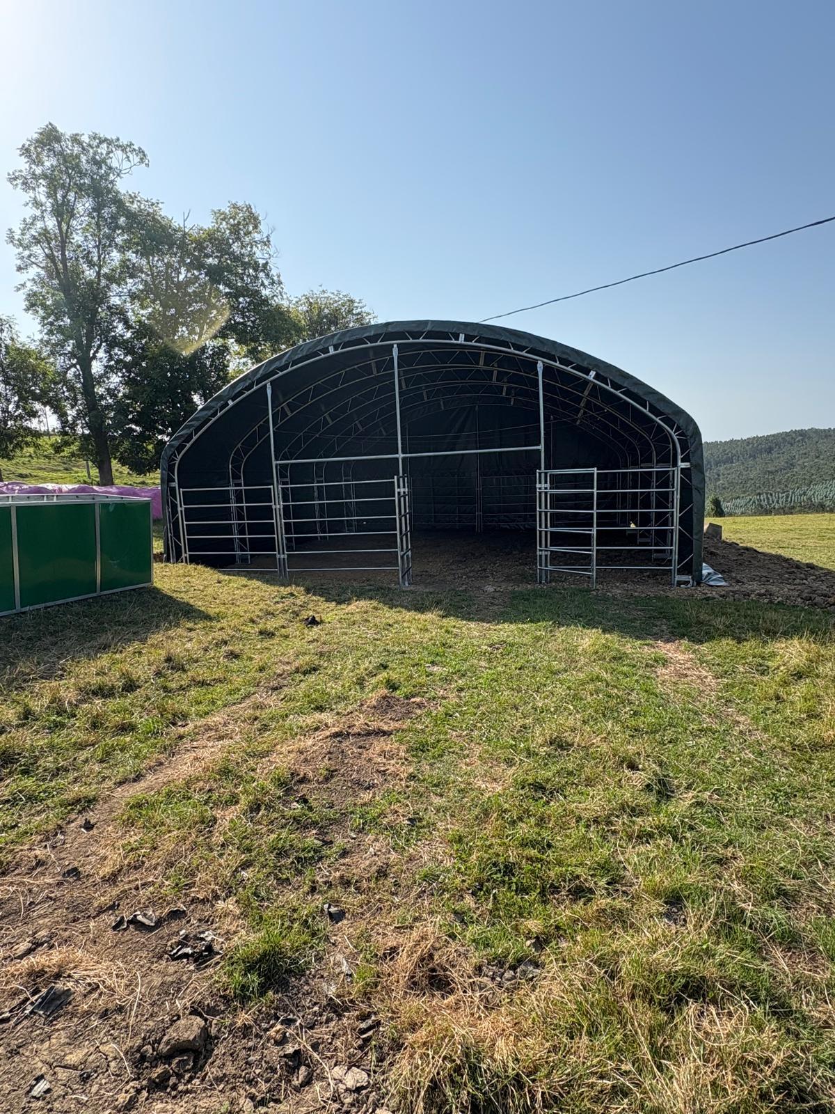 We installed two 10×10 m animal tents on a farm in Cantabria, ready for use in only 48 hours. Their hot-dip galvanized steel frames and reinforced PVC covers provide full protection against wind, rain, and wear, ensuring a safe and durable shelter for livestock.
